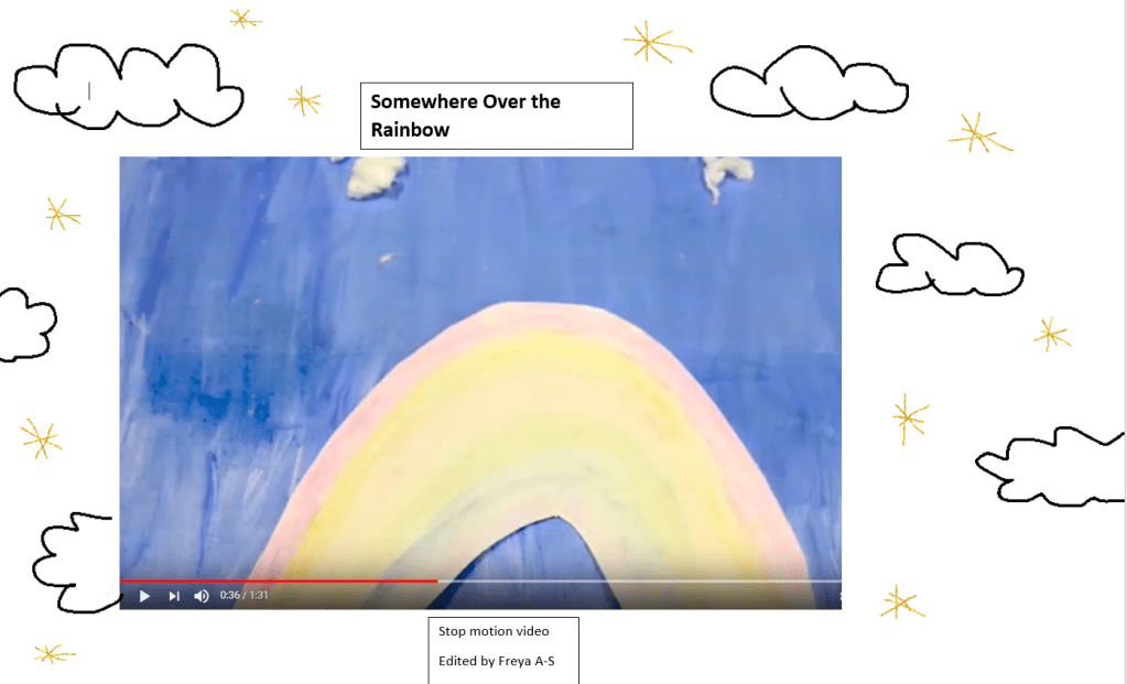 This the post I created using word on my laptop, and using a screenshot of the video of the song we did. I drew some clouds and stars to give it some background.